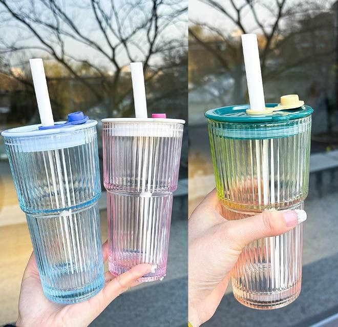لیوان اسموتی شیشه ای دارای نی و در بدون نشتی