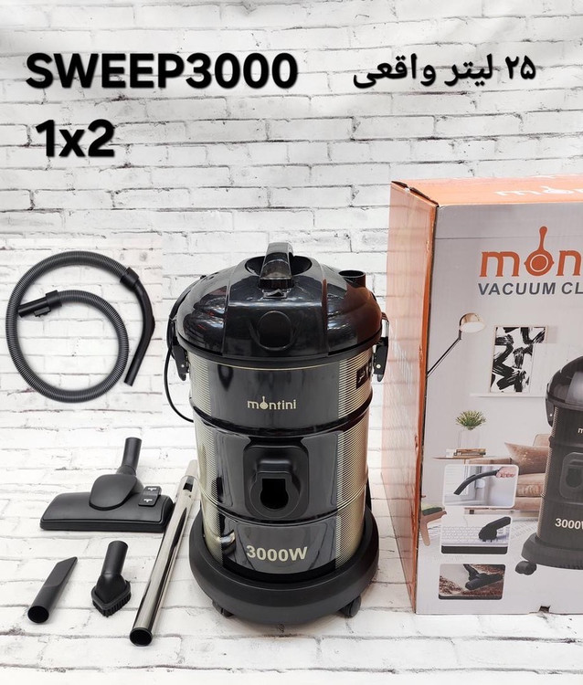جارو برقی سطلی مونتینی مدل SWEEP3000 یک جاروبرقی سطلی با ظرفیت 25 لیتر، که برای نظافت منزل و محیطهای کاری طراحی شده است. این مدل دارای توان مصرفی واقعی 3000 وات است که نشاندهنده قدرت مکش بسیار بالا و عملکرد قوی دستگاه میباشد. طول سیم برق این جاروبرقی حدود 5 متر است که امکان استفاده راحتتر در فضاهای بزرگ را فراهم میکند.